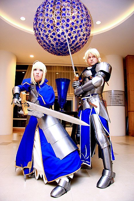 My cosplay partner and I also made a matching outfit of the male version of Saber from Fate/Prototype. His costume was made out of the same materials as mine. ”