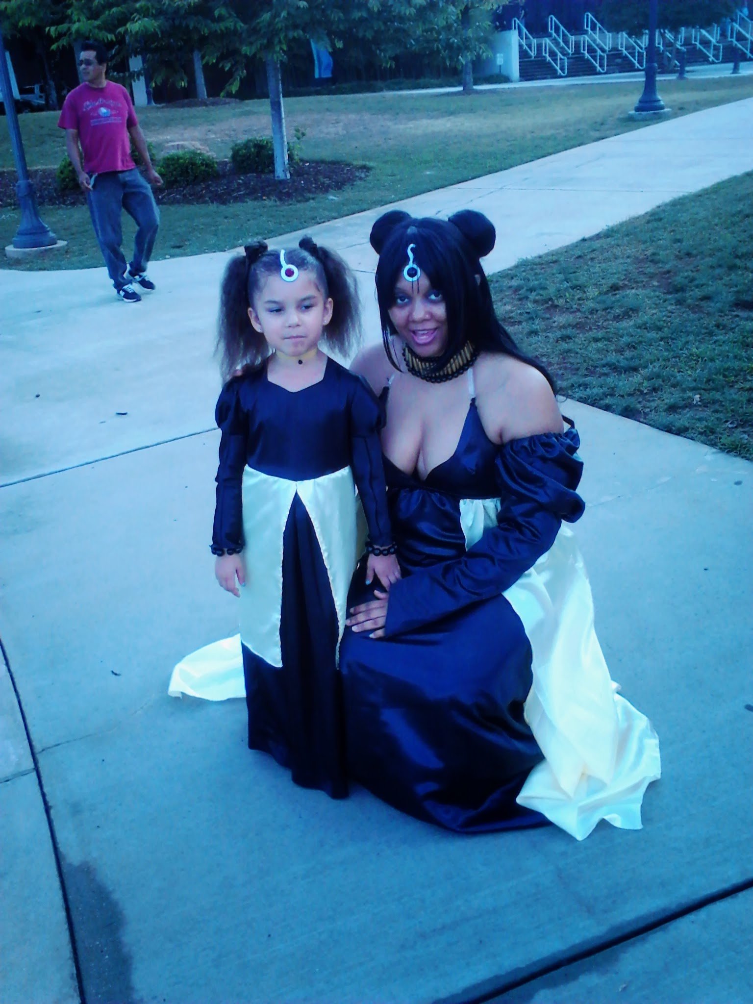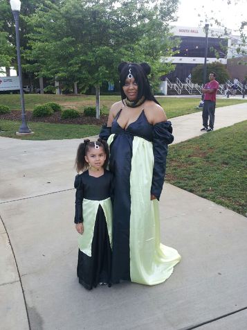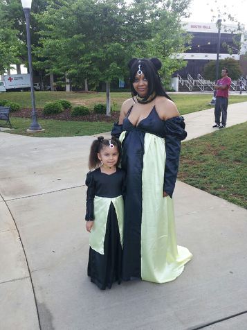 “Before handling the wig for styling I gave it a have dose of Motions oil sheen and let it set for a while. The bangs on the wig were cut to the length I desired. I used a tad bit of Got2B gel to on the bangs to help maintain the shape of a parted bang. Also it helps keep fly away hairs in place around the face. The buns are attached with alligator clips that were sewn onto the buns. This allows for the wig to be transported without difficulty. The wig is not 100% accurate to the character’s floor length hair. This was done on intentionally so that the wig could be worn with ease and less tangling would occur. After wearing it while handling my daughter I was super shocked at how the wig had minimal tangling even though it was long and curly.”