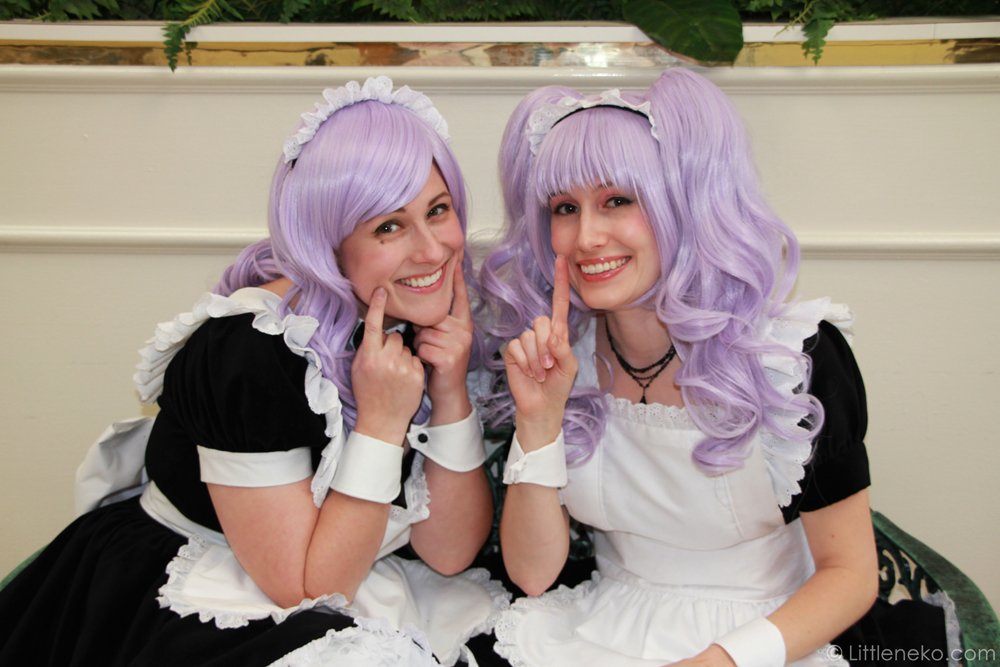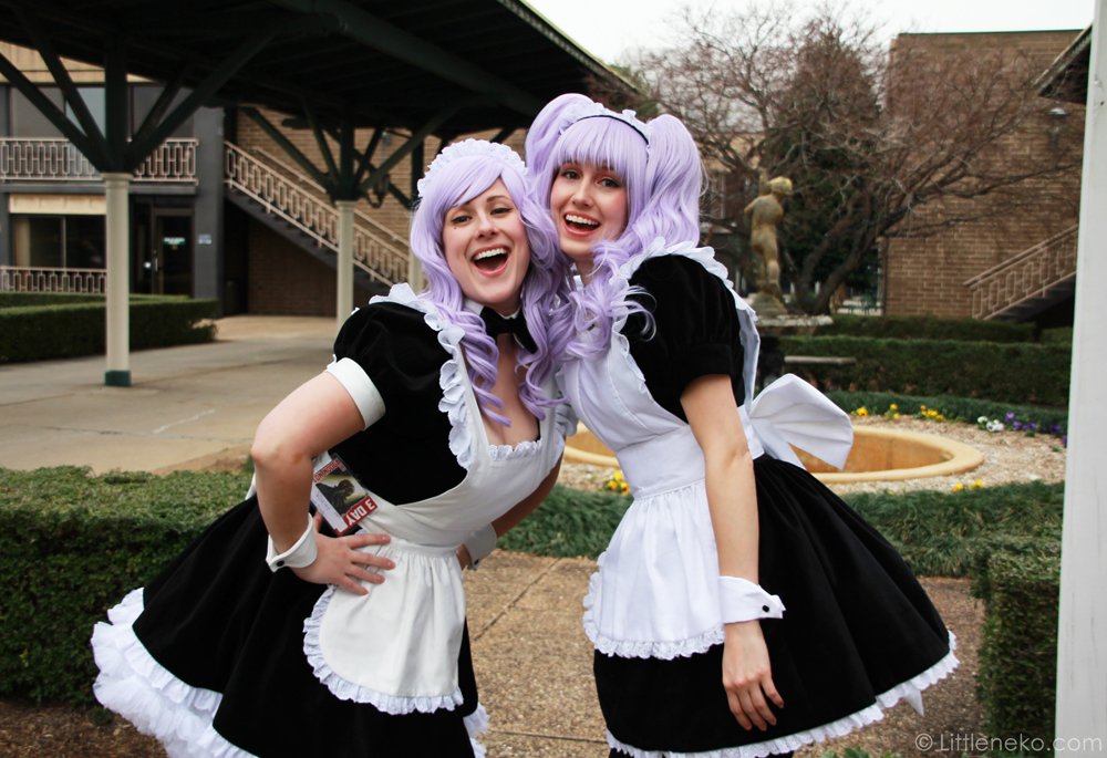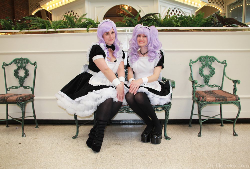 “These are custom Maid cosplays we created ourselves, simply based on maid costumes seen in anime. I have always wanted to do a maid cosplay after seeing this in anime and hearing about maid cafes in Japan. Brandi and I live about 5 hrs away from each other so we hopped on Skype and sketched ideas for the costume. Then we each made our own cosplays with the same designs & custom patterns.