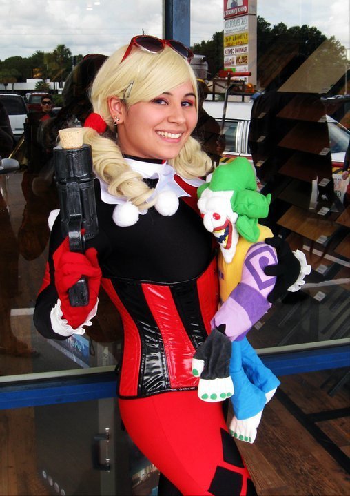 “I trimmed the bangs a bit more as they were a bit longer when I first purchased it (since this picture I have fluffed out the bangs to resemble the character more) and brushed out the curls to make them a bit longer along with styling the pigtails carefully so no netting showed in the back. I know Harley’s pigtails are usually a bit higher but I really liked the way they looked a bit lower so I decided to keep them that way. =3 This wig was super easy to style and I’ve had to wash/ detangle it numerous times (mostly due to wear in this humid Florida weather) and I have to say, those curls do not move, no matter how much you brush and style them, they always bounce right back which I absolutely love. Since I purchased it in 2010, That wig has gotten tons of use and love and it still looks pretty amazing. These wigs last, I am very impressed. 😀 ”